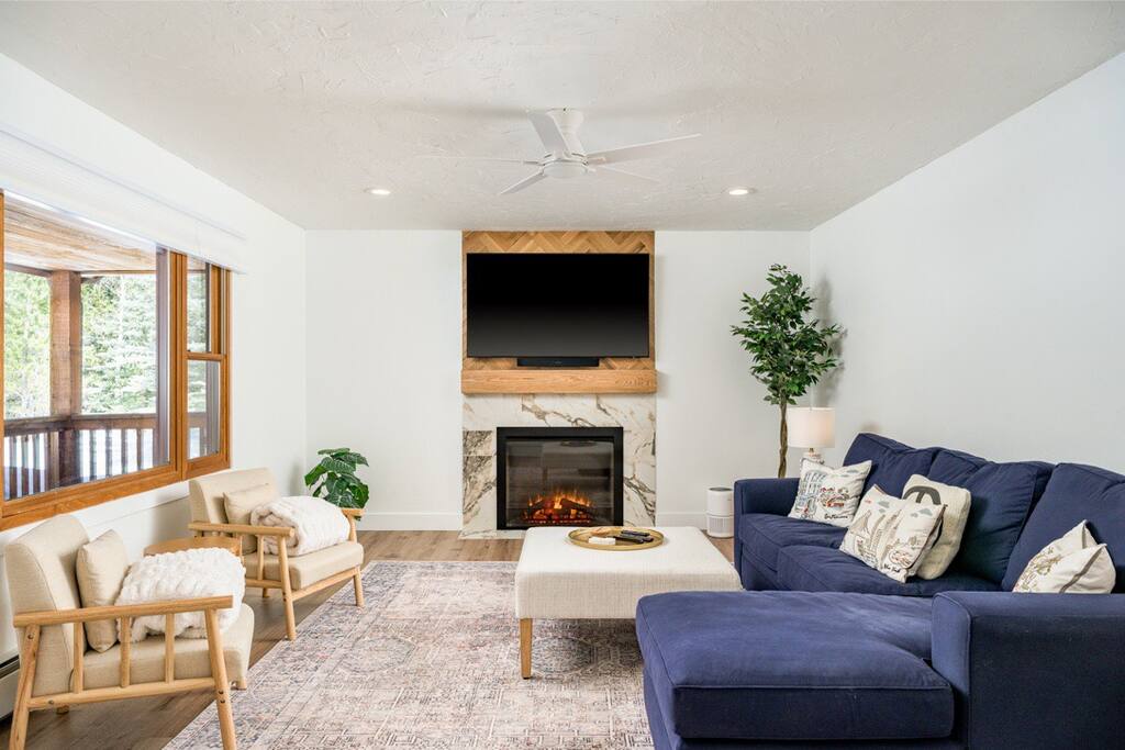 KEY FEATURES: ☀ Master bedroom w/ king ☀ Hot Tub- seats 7 people ☀ 3 Full bathrooms (one with a tub) ☀ Chef’s kitchen with a 36” gas range and large island ☀ 65”, 58", and 40" Roku-enabled Smart TVs ☀ Keurig coffee station ☀ High-speed WiFi w/ 2 electric standing desks including a 32" monitor ☀ Kids toys and games ☀ Large back and front yard with a playground ☀ Fully equipped + stocked kitchen ☀ Onsite parking and washer/dryer Add our listing to your wishlist by clicking the ❤️ in the upper-right corner. ☆☆ BEDROOMS ☆☆ This spacious home is the perfect location for a family getaway with three elegant bedrooms that sleep eight guests comfortably. Luxurious linens and bedding exude a high-end feel and large, walk-in closets provide plenty of space to unpack and settle in for a relaxing stay. Bedroom 1: second floor ✔ Master suite with en suite bath ✔ Comfortable king-sized bed with memory foam mattress ✔ Large, walk-in closet for hanging clothes and a dresser for other storage ✔ 58” Roku-enabled Smart TV ✔ Electric, adjustable-height standing desk Bedroom 2: second floor ✔ Two full over full bunk beds with memory foam mattress ✔ Closet for hanging clothes and storage cubes for other storage Bedroom 3: first floor ✔ Comfortable queen-sized with memory foam mattress ✔ Closet for hanging clothes ✔ 40” Roku-enabled Smart TV ✔ Electric, adjustable-height standing desk with 32” monitor ☆☆ BATHROOMS ☆☆ The home's three stylish bathrooms are thoughtfully stocked with plush towels and the following essential toiletries/amenities for your convenience: ✔ Stunning mountain AND lake views ✔ Public Goods shampoo, conditioner, and body wash ✔ Extra toilet paper ✔ Hair Dryer ✔ Makeup towels ✔ Extra towels Full Bathroom 1: private bathroom in the master suite on the second floor with mountain and lake views including a heated floor, towel warmer, double-sink vanity, large, walk-in shower with dual 15” shower heads and hand-held sprayer Full Bathroom 2: mountain and lake views, large walk-in shower and standalone tub located off the second floor hallway Full Bathroom 3: mountain and lake views, large walk-in shower with 15” shower head and hand-held sprayer located off the first floor hallway ☆☆ KITCHEN, LOUNGE & DINING ☆☆ The home opens into a cozy entryway with shoe storage and hat and coat hooks. It flows to the stairs straight ahead, to the dining room to the right, and the living room to the left. The living room provides the perfect place to relax, entertain, and enjoy quality time with your family or traveling companions. The dining room is a wonderful place to enjoy a meal together- the large oak table comfortably seats 8 people. The living room and the dining room both flow into the kitchen, which features a stunning view of the mountains and lake, as well as beautiful white quartz countertops, a 36” gas range, coffee bar, and 8’ island with seating for 3 people. LIVING ROOM ✔ Large, comfy sofa with end tables ✔ Coffee table ✔ Two accent chairs with an end table in between ✔ 65” Roku-enabled Samsung Smart TV with apps to stream TV shows or movies using your own logins ✔ Electric fireplace ✔ Games and children’s toys KITCHEN ✔ Chef’s kitchen stocked with high-end cookware and bakeware ✔ White quartz counters including on an 8’ island ✔ 36” gas range with exhaust hood ✔ Stainless steel appliances and finishes: refrigerator, freezer, drawer microwave, dishwasher, electric oven ✔ Coffee bar with electric kettle, French Press, coffee grinder, and Keurig coffee maker with fully stocked K-Cups DINING ROOM ✔ Seats 8 guests comfortably around an oak table with a stylish chandelier overhead. ☆☆ BACKYARD ☆☆ Outdoor Space ✔ Seven-person Hot Tub ✔ Large, flat backyard with grass ✔ Cozy patio with new outdoor furniture ☆☆ LAUNDRY AREA ☆☆ Pack light! The home has a laundry area off the second floor hallway that includes: ✔ Washer and dryer ✔ Ironing board and iron ✔ Starter supply of laundry detergent ★☆ Book Today & Let Us Take Care Of You At The Crown Chalet! ☆★ Blue River STR License: LR23-000003